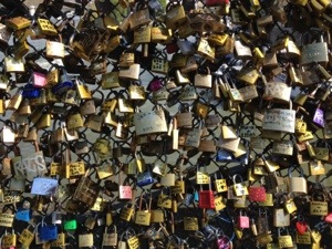 Aşkımızın çalınacağından ürküp adak ağacına bez bağlar gibi kilitler takıyoruz Paris’in köprülerine. Anahtarını bırakıyoruz Seine’in derinliklerine. Şehrin tarihinden, nehrin deviniminden, köprüde yanı başımızda sallanan diğer kilitlerde saklı ortak eylemin gücünden yararlanmak istiyoruz.
